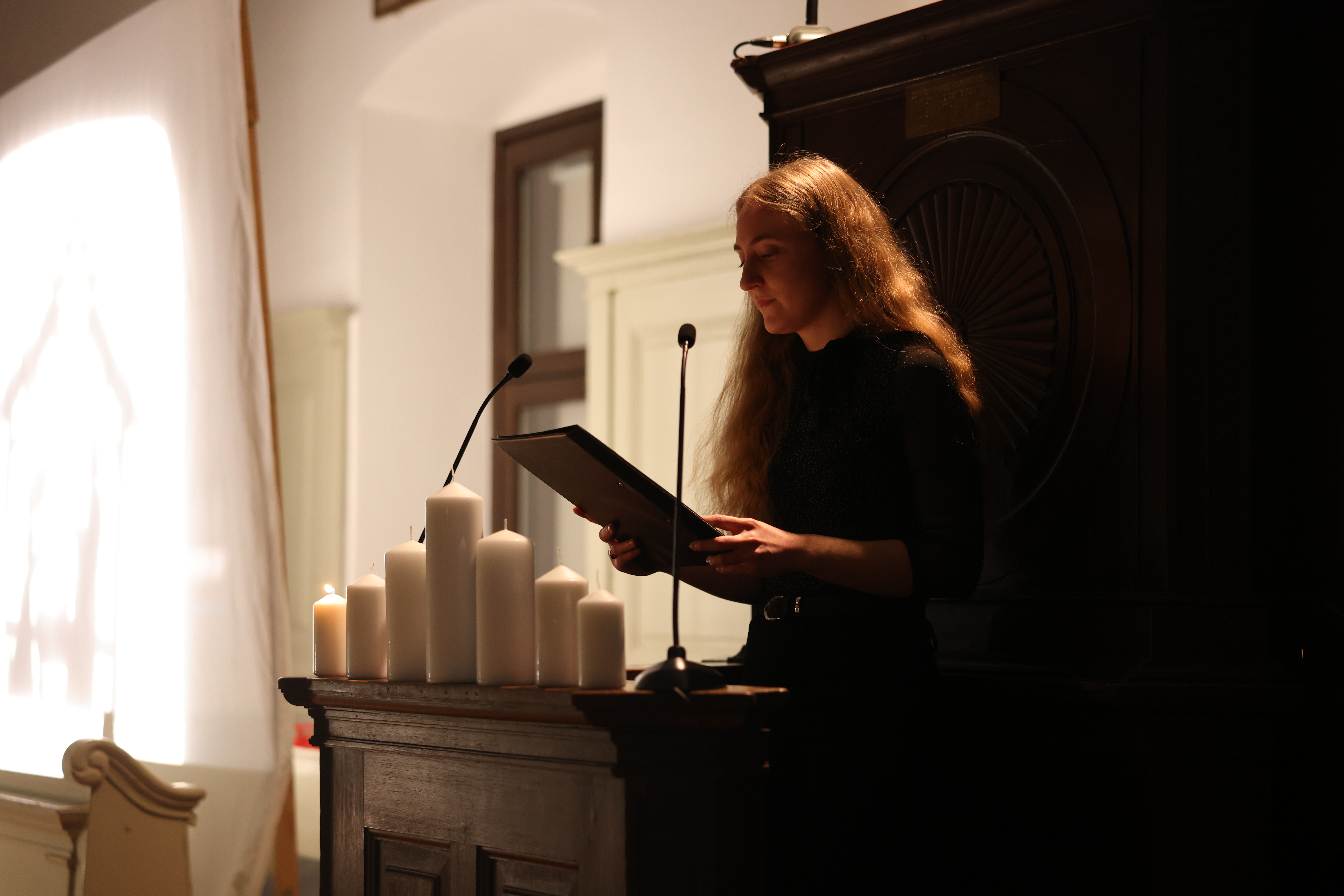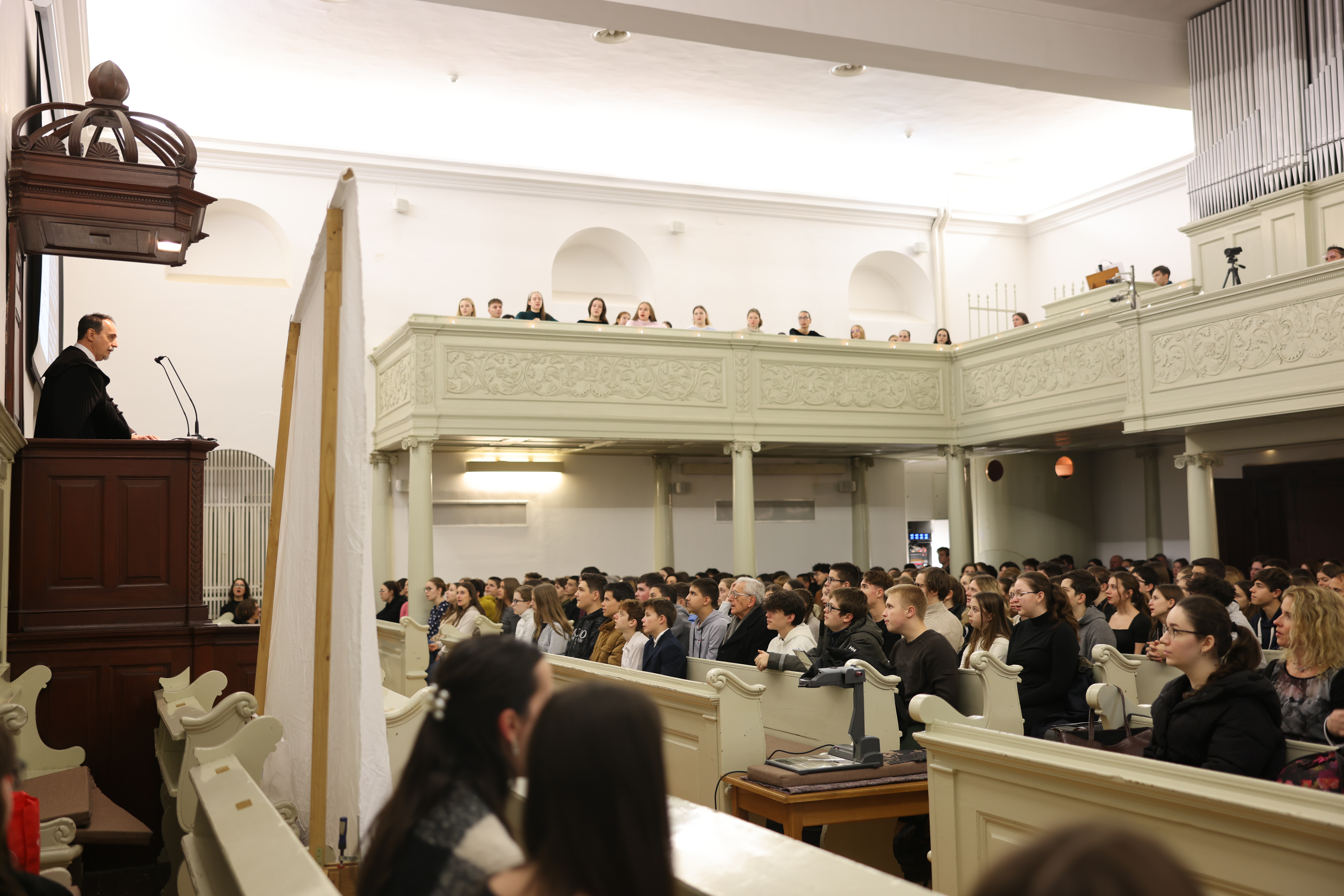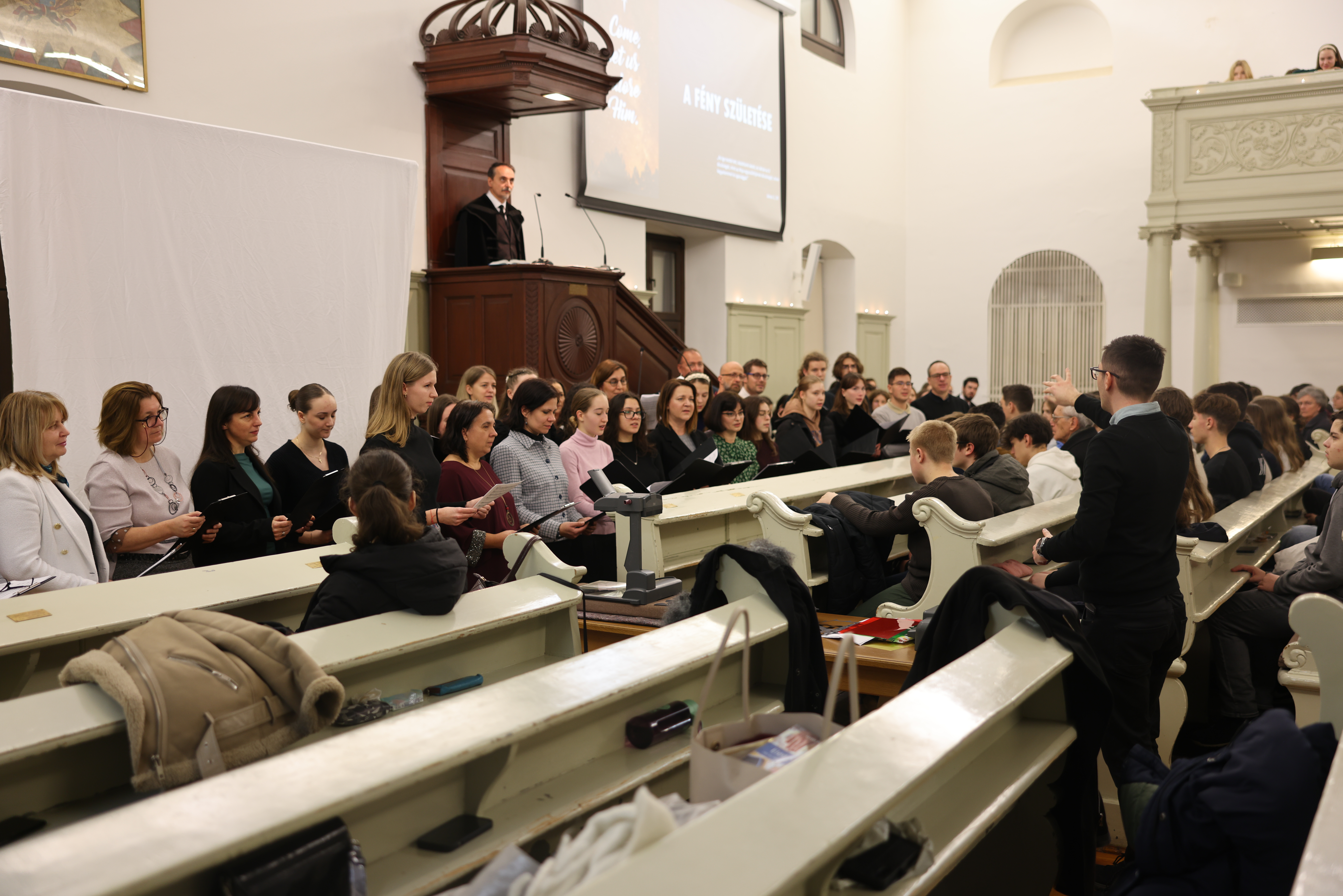 Az adventi időszak kiemelkedő eseménye minden évben a kibocsátó istentisztelet. Nem csupán azért, mert a téli szünet előtti utolsó este tartjuk, hanem azért is, mert ilyenkor a meghitten világító gyertyák és mécsesek különleges hangulatot keltenek. A picike lángok és az adventi üzenet az idén összekapcsolódott, hiszen a fény születése volt az alkalom témája. Fehér Norbert, vezető vallástanár, az újjászületés csodájának adventi üzenetét hozta közénk János evangéliuma alapján. A végzős vallás fakultációs diákok a fény és világosság szimbólumának tükrében az üdvtörténet állomásain keresztül lelki utazásra hívták az egybegyűlteket. Az istentisztelet különleges színfoltja volt az a Berkesi Sándor által írt többszólamú karácsonyi kórusmű, amelyet a tanárokkal kiegészült diákkórus adott elő.