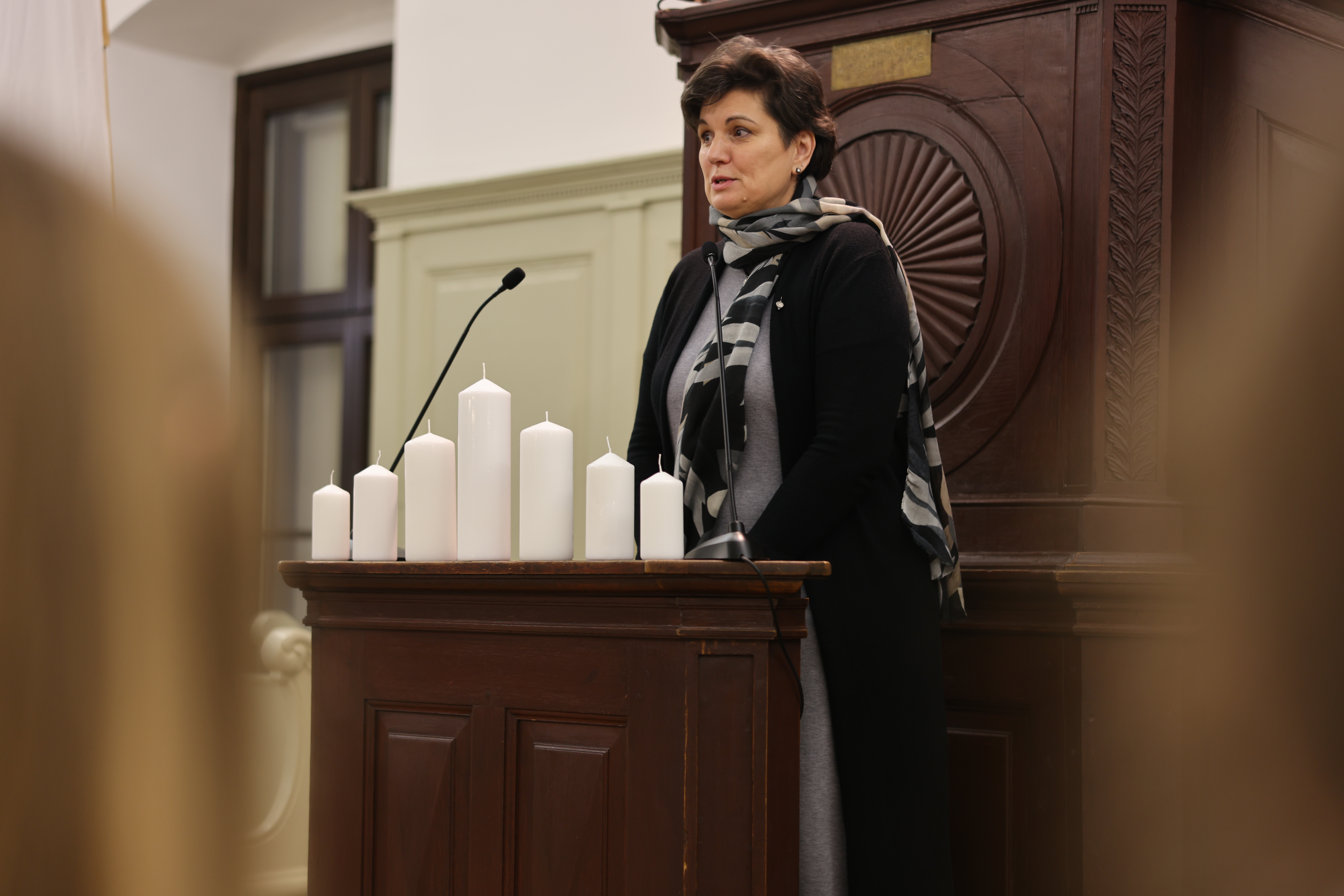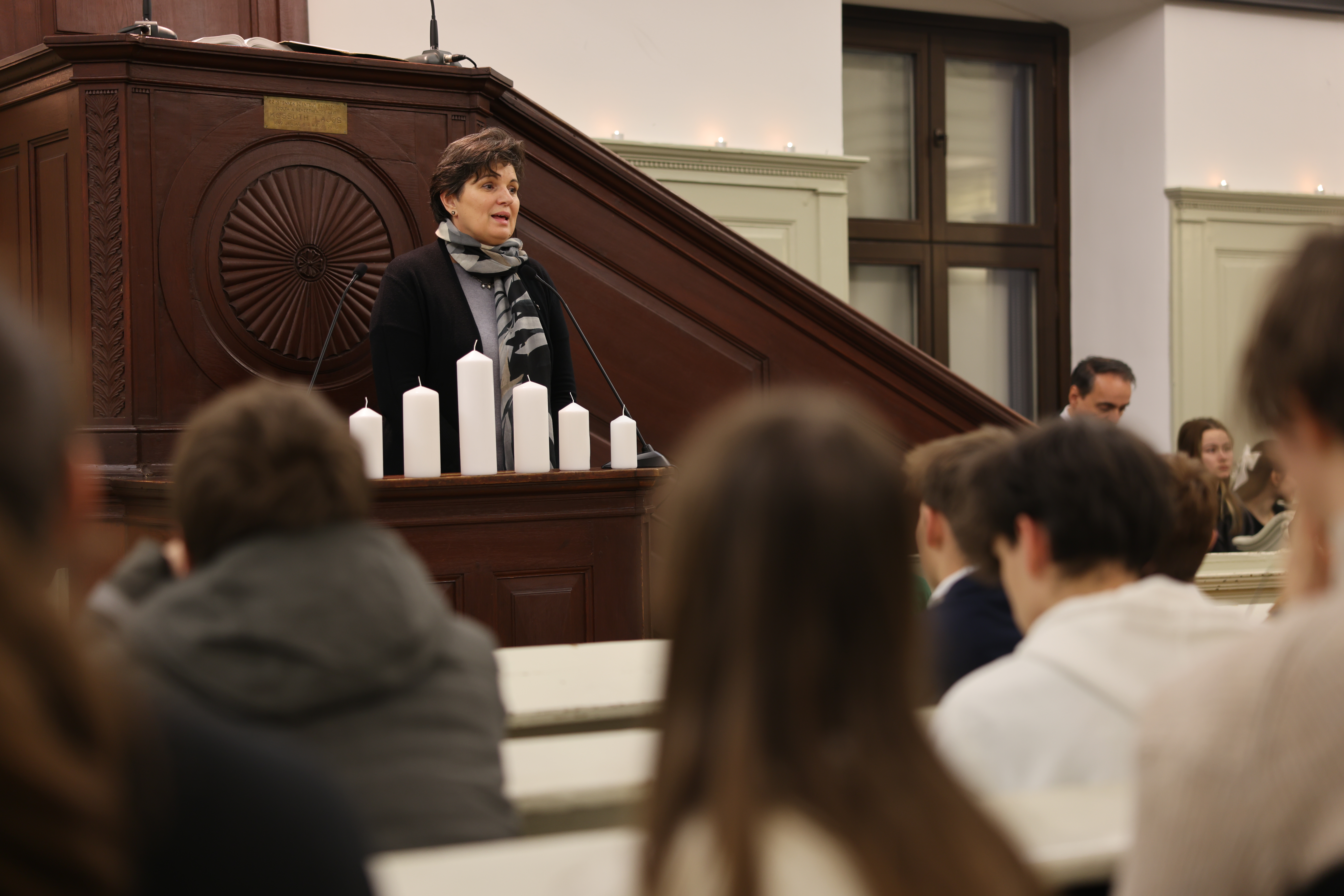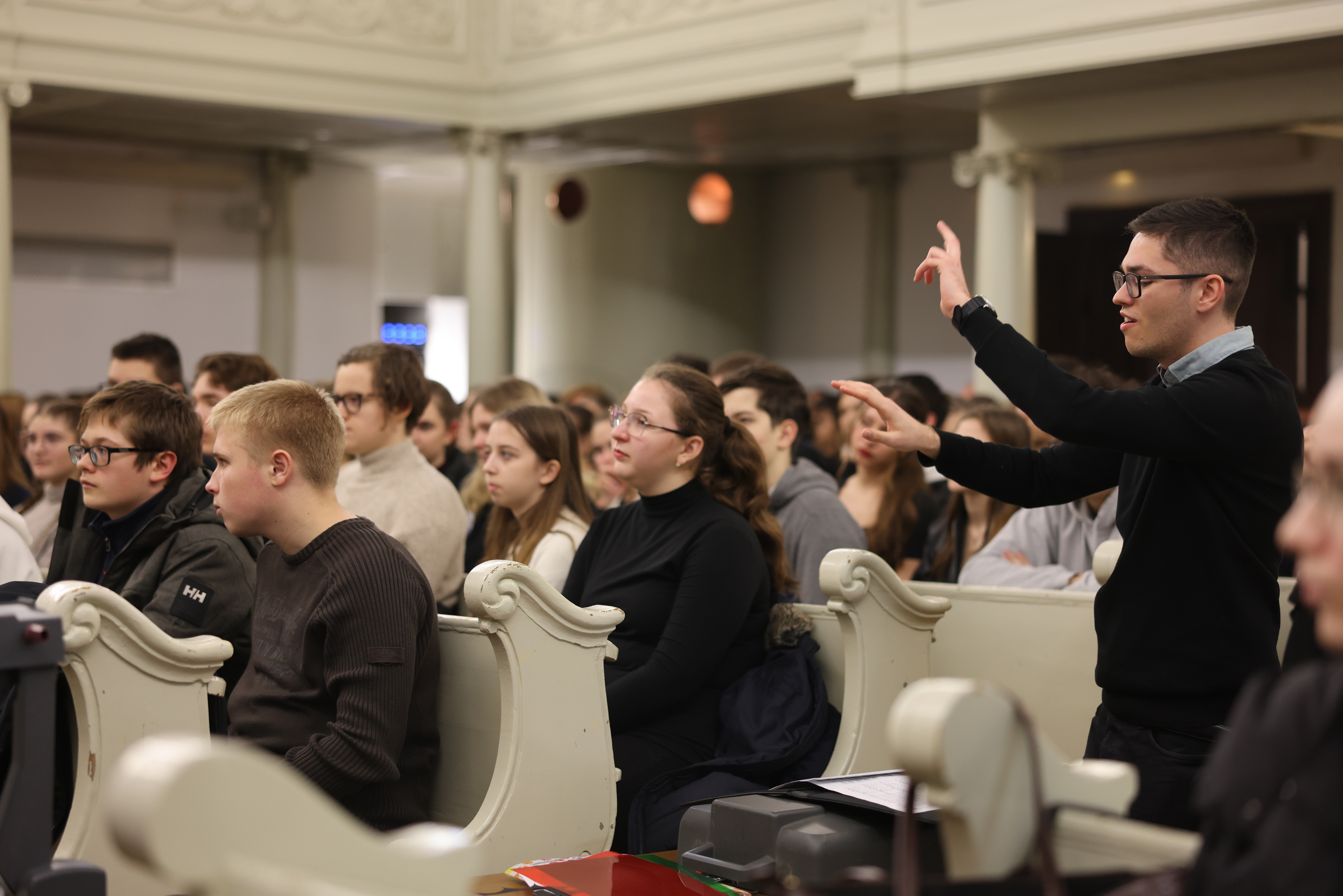 Az adventi időszak kiemelkedő eseménye minden évben a kibocsátó istentisztelet. Nem csupán azért, mert a téli szünet előtti utolsó este tartjuk, hanem azért is, mert ilyenkor a meghitten világító gyertyák és mécsesek különleges hangulatot keltenek. A picike lángok és az adventi üzenet az idén összekapcsolódott, hiszen a fény születése volt az alkalom témája. Fehér Norbert, vezető vallástanár, az újjászületés csodájának adventi üzenetét hozta közénk János evangéliuma alapján. A végzős vallás fakultációs diákok a fény és világosság szimbólumának tükrében az üdvtörténet állomásain keresztül lelki utazásra hívták az egybegyűlteket. Az istentisztelet különleges színfoltja volt az a Berkesi Sándor által írt többszólamú karácsonyi kórusmű, amelyet a tanárokkal kiegészült diákkórus adott elő.