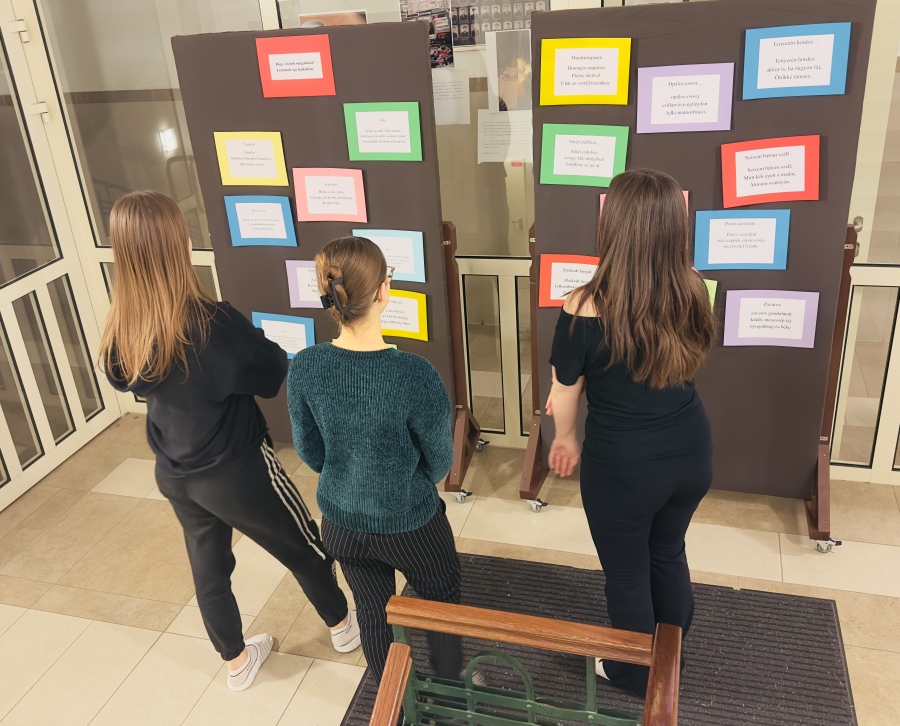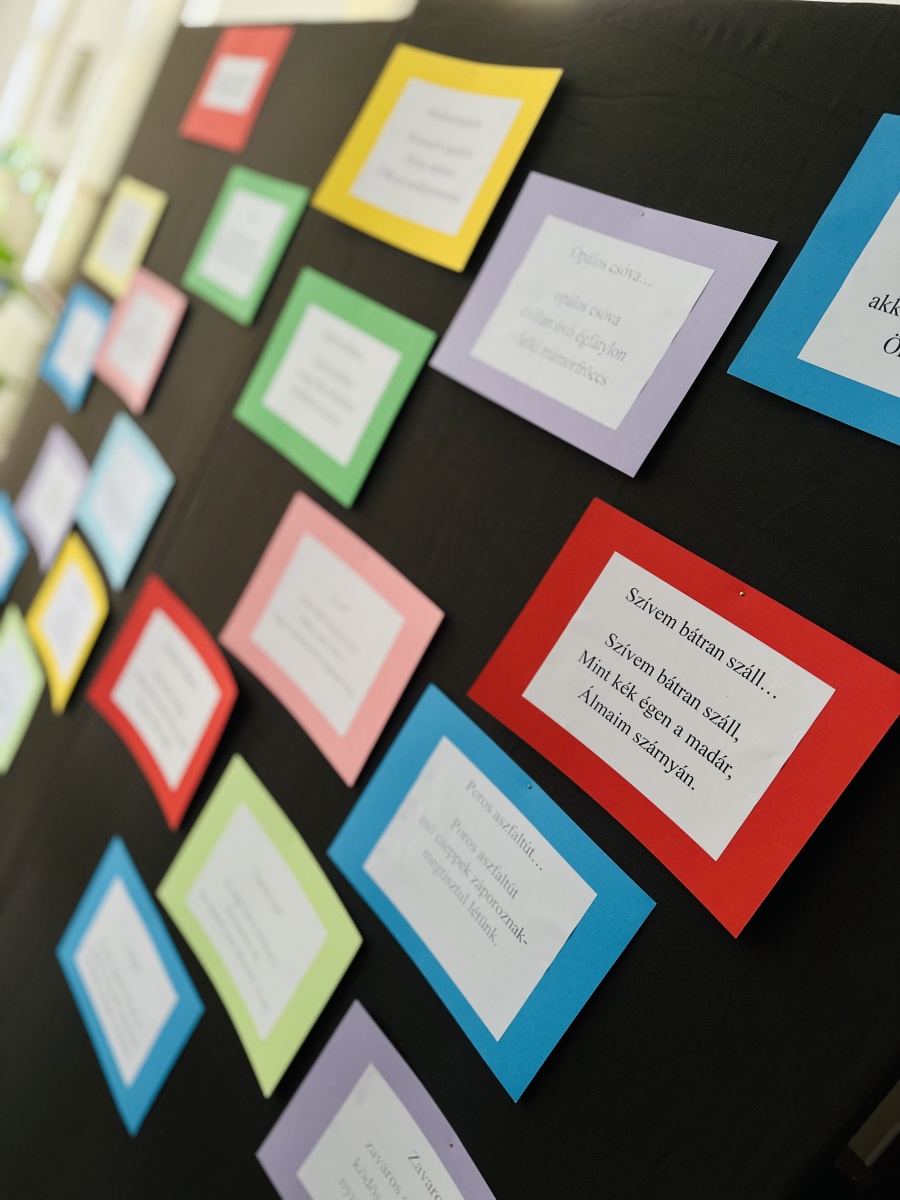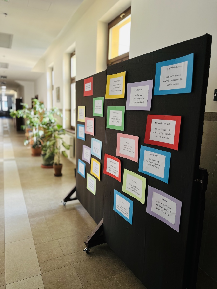 Szombaton kiállításra kerültek a haiku pályázatra beérkezett művek, melyek hűen tükrözik kollégistáink érzéseit egyszerű verses formába öntve. A kiállított versek sokféle témát és lelkiállapotot tárnak fel, az identitás-kereséstől a jövőtől való félelemig, a borongós hangulattól a szárnyaló szív állapotáig, megmutatva fiataljaink érzékenységét, önkifejező képességét.