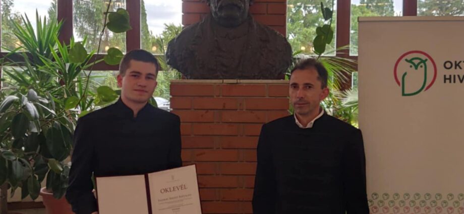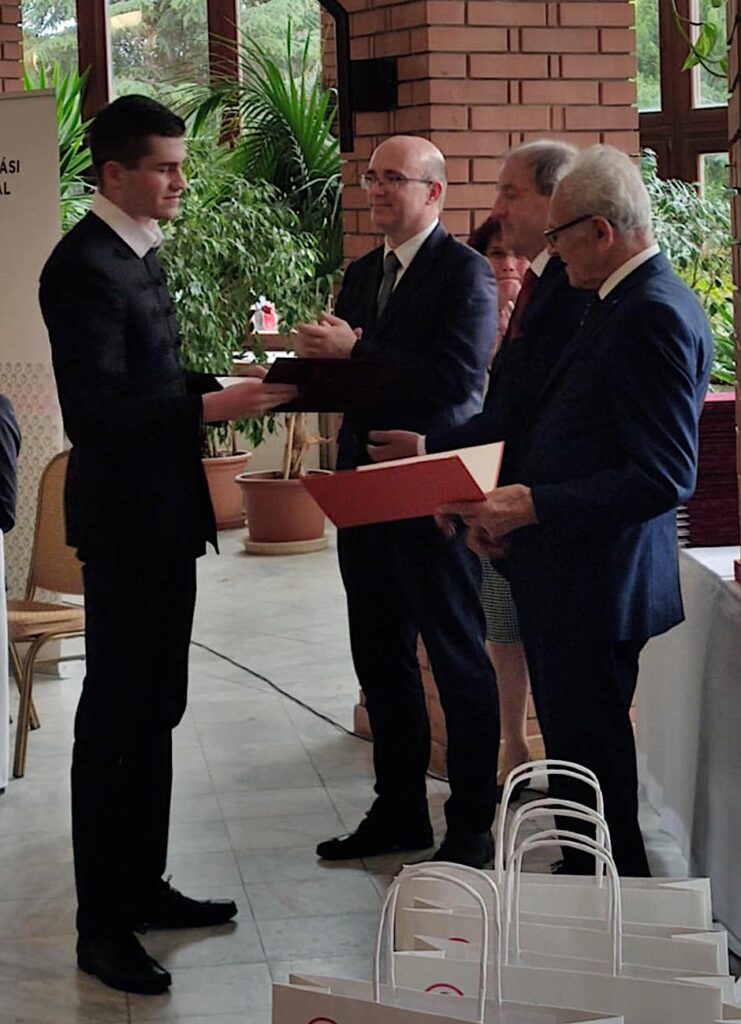 Végzős diákunk, Fazakas Bálint Bertalan (12.D) átvette a földrajz OKTV második helyért járó oklevelet a budapesti díjátadón a Móricz Zsigmond Gimnáziumban. Nagyon büszkék vagyunk Bercire, aki pályamunkáját Debrecen kisvízfolyásainak összehasonlító elemzéséből írta és felkészítő tanára, Katona Péter munkájára. Isten áldását kívánjuk mindkettőjük életére.