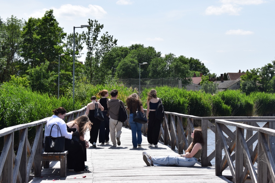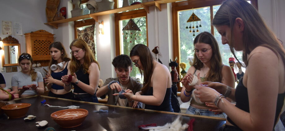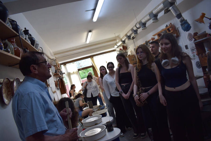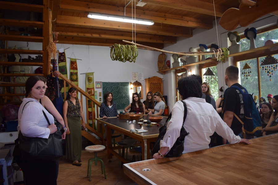 A refisek a Nádudvaron tanuló diákokkal a műhelyekben találkozhattak. A fazekasműhelyt a nádudvari fekete kerámia hagyományát évszázadokon át éltető Fazekas család tagja, Fazekas Ferenc mutatta be, a faművesek mindennapjaiba Győri Balázs, a szövőműhelyébe Zombori Judit avatta be diákjainkat. Benő Tamás népi bőrműves szakoktató a bőrös szakmák szerteágazó rendszerét vázolta, majd a technikákat is ismertette. A felismerhetőnek számító bőrtípusokon túl harcsa- és rájabőrt is tapinthattunk. A takácsműhelyre való rácsodálkozás után a nemezműhelyben kerülhetett arra sor, hogy saját alkotás is szülessen: egy-egy karkötő készülhetett a műhely két oktatójának, Árvai Anikónak és Négyesi Boglárkának a segítségével. Debrecentől mindössze 40 kilométerre olyan családias iskola kínálatával ismerkedhettünk meg, ahova a Kárpát-medence távoli településeiről is érkeznek diákok, akik a hagyományos paraszti kultúra népművészetével szeretnének megismerkedni.