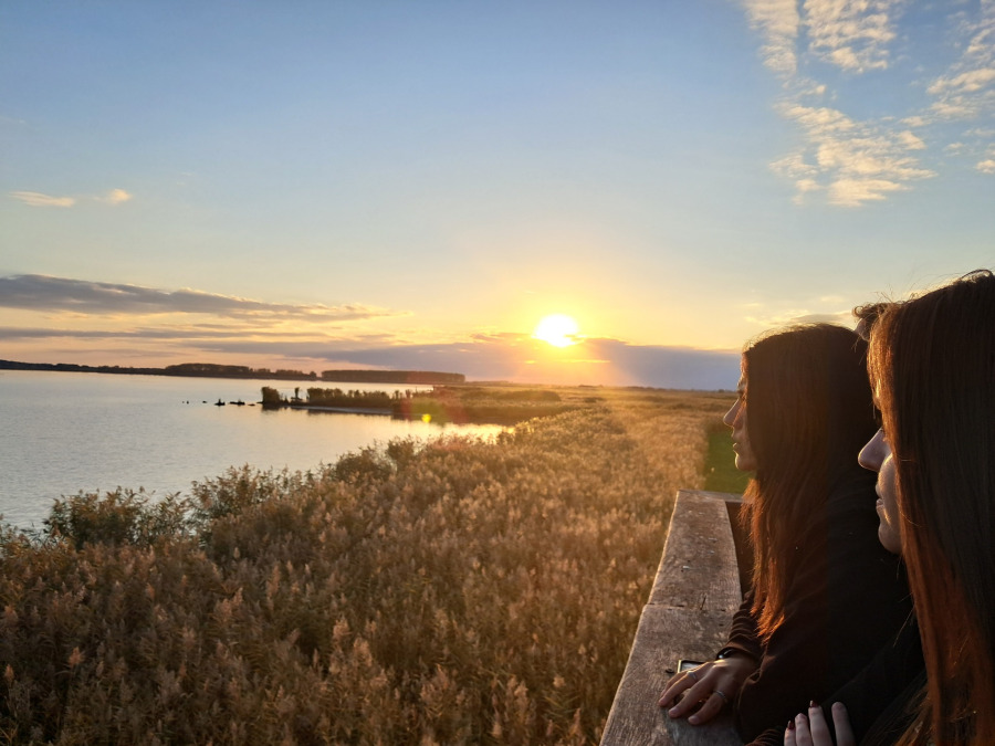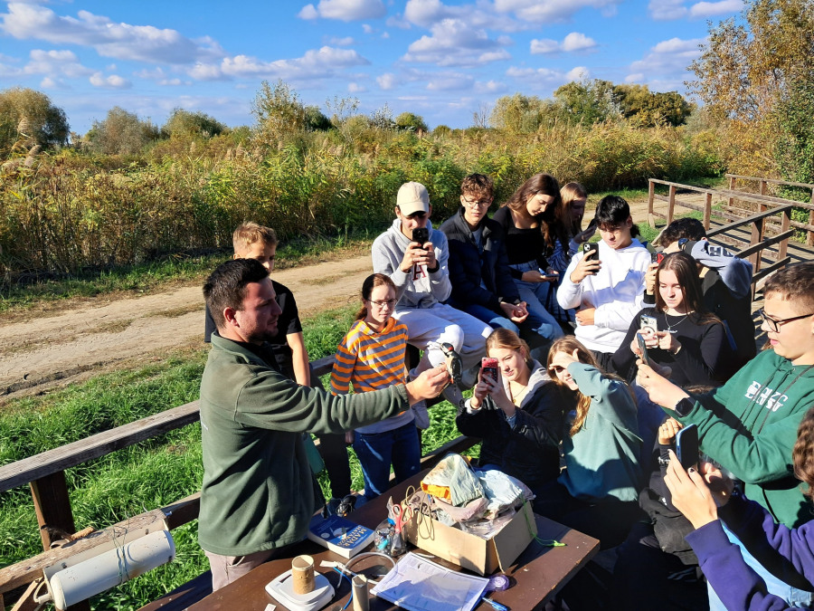 Az előző évekhez hasonlóan a 9.b osztály biológia-kémia és matematika tagozatos diákjai a Hortobágyi Nemzeti Parkban egy ornitológiai kiránduláson vettek részt. A program a Szálka-halomnál és a hortobágyi kitelepítések emlékművénél kezdődött. Ezután a HNP munkatársainak segítségével a madárgyűrűzés rejtelmeibe tekinthettünk be, ahol láthattuk hazánk legkisebb madarát is (sárgafejű királyka). Megcsodáltuk az élőhely-rekonstrukció egyik mintaterületét, majd eljutottunk a darubehúzás egyik helyszínére, a Virágoskúti madárleshez. A csodálatos nap végén eszünkbe jutott Jézus Krisztus igéje: „Nézzétek az ég madarait! Nem vetnek, nem aratnak, csűrbe sem gyűjtenek – mennyei Atyátok táplálja őket. Nem többet értek ti náluk?” Hálásak lehetünk ezért a napért!