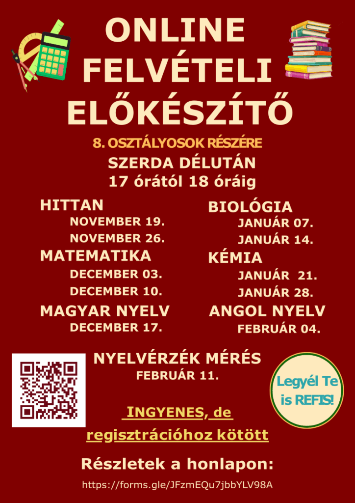 A felkészítő ingyenes, azonban regisztrációhoz kötött.