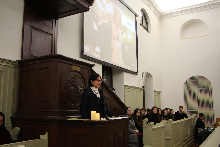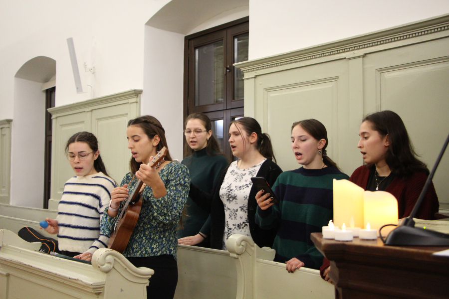Az első adventi vasárnap előtti estén diákpréceszre gyűlt össze az internátus ifjúsága. A régi időket elevenítettük fel, amikor még a Kollégium diáksága maga szervezte és vezette a szombat esti imaórát. Ezúttal a diákok zenével, énekkel, vetített képes elcsendesedéssel, bizonyságtétellel és igei gondolatokkal kezdték az ünnepvárás időszakát. Az alkalmat tovább színesítette, hogy az öt éve érettségizett egyik egykori osztályunk is részt vett rajta az Oratóriumban.