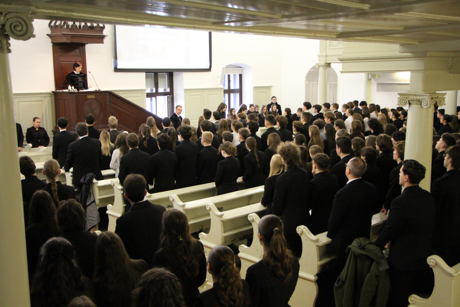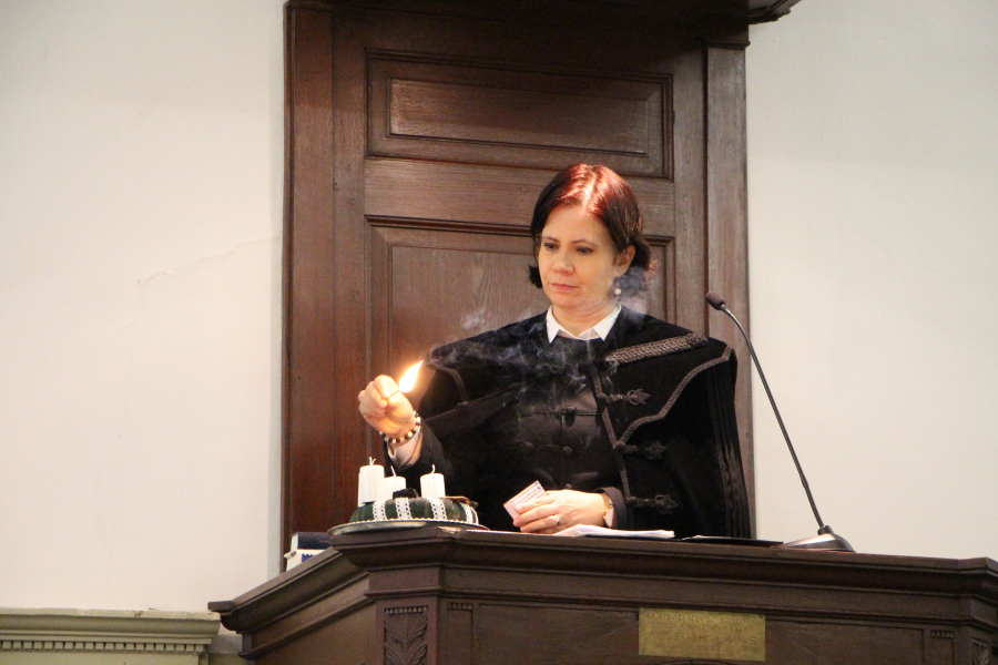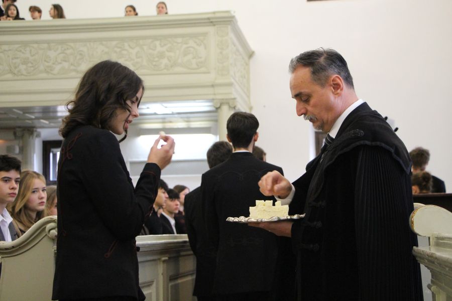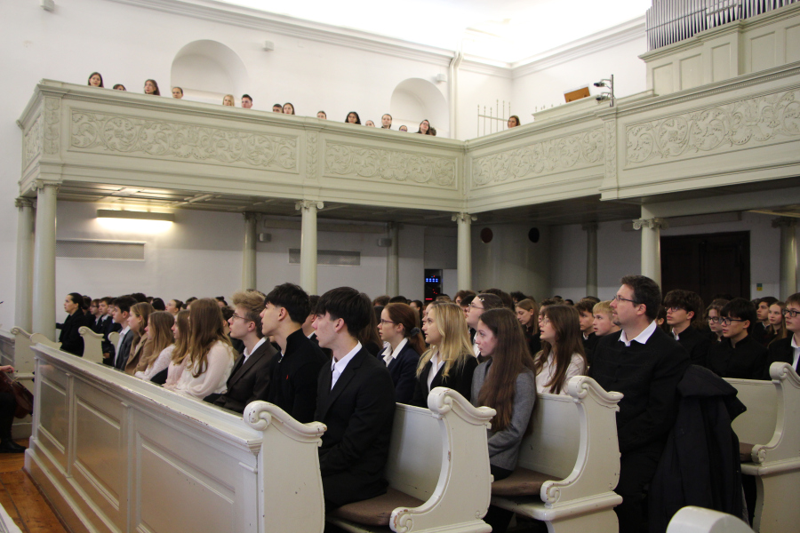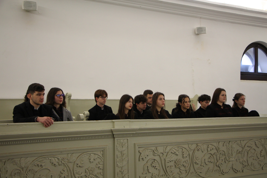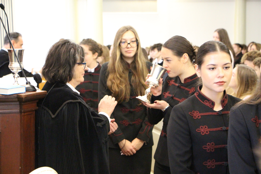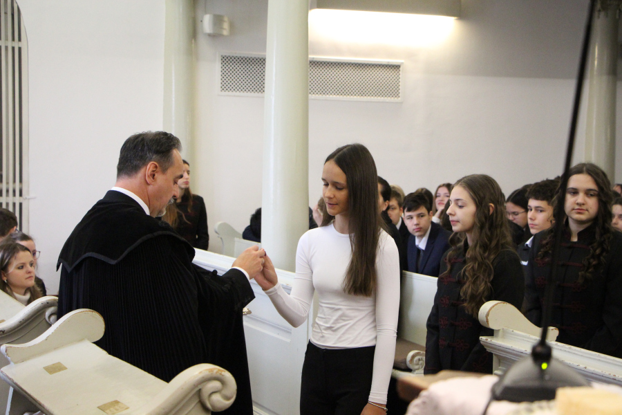 Advent első vasárnapján hagyományainkhoz hűen úrvacsorás istentiszteletre gyűlt össze tanári karunk és az ifjúság. Ezúttal a zenekar színvonalas szolgálata is színesítette ezt lelki üzenetben bővelkedő alkalmat. Az igehirdetésben az iskolalelkész az angyali üdvözlet történetén keresztül a tudatos, belső csendben megélt istenvárásra hívta fel a diákok figyelmét ebben a hangos, színpompás élményekkel túlterhelt világban.