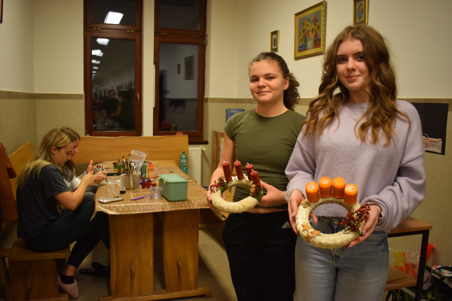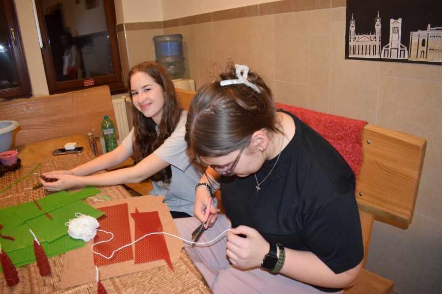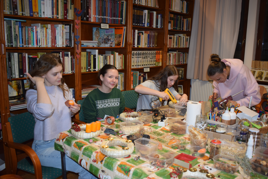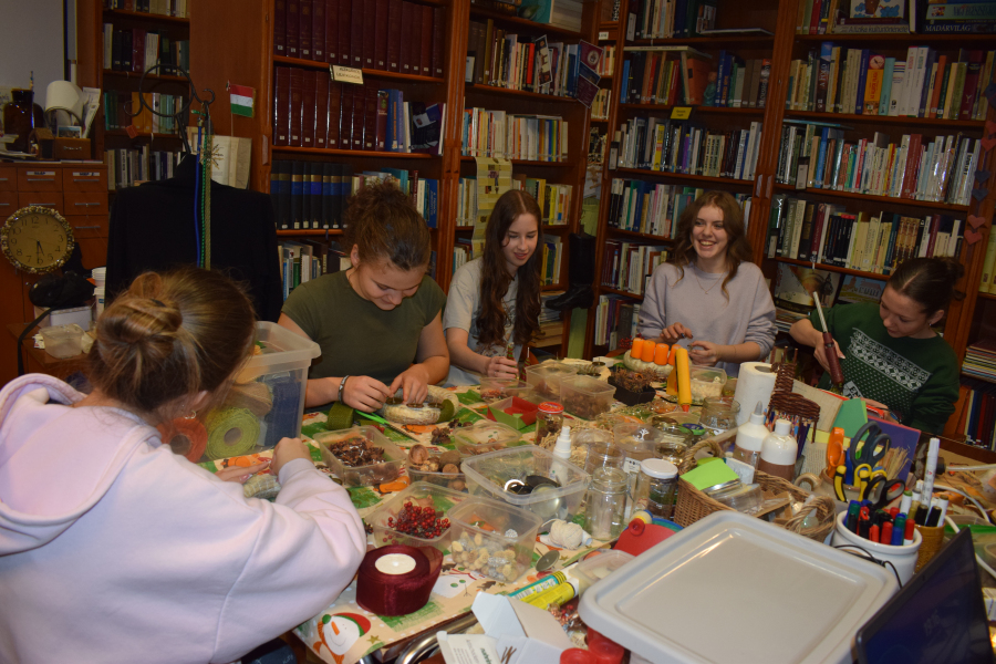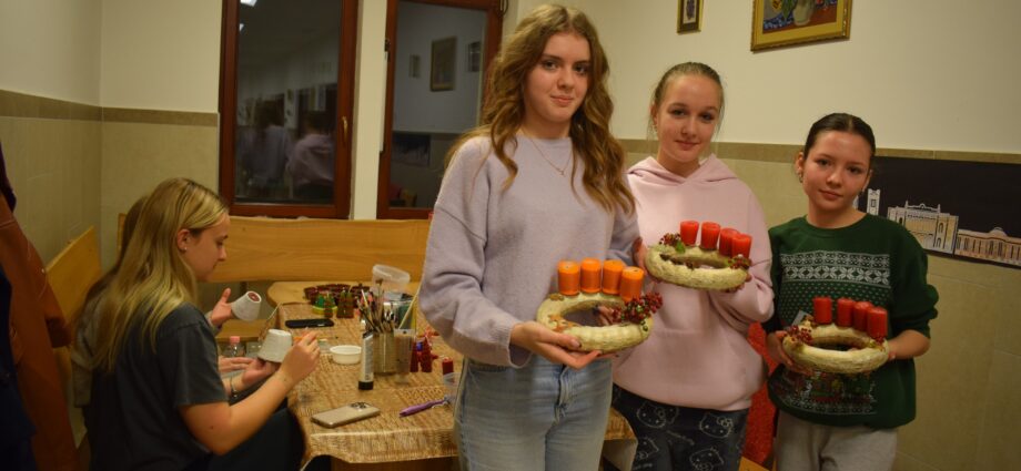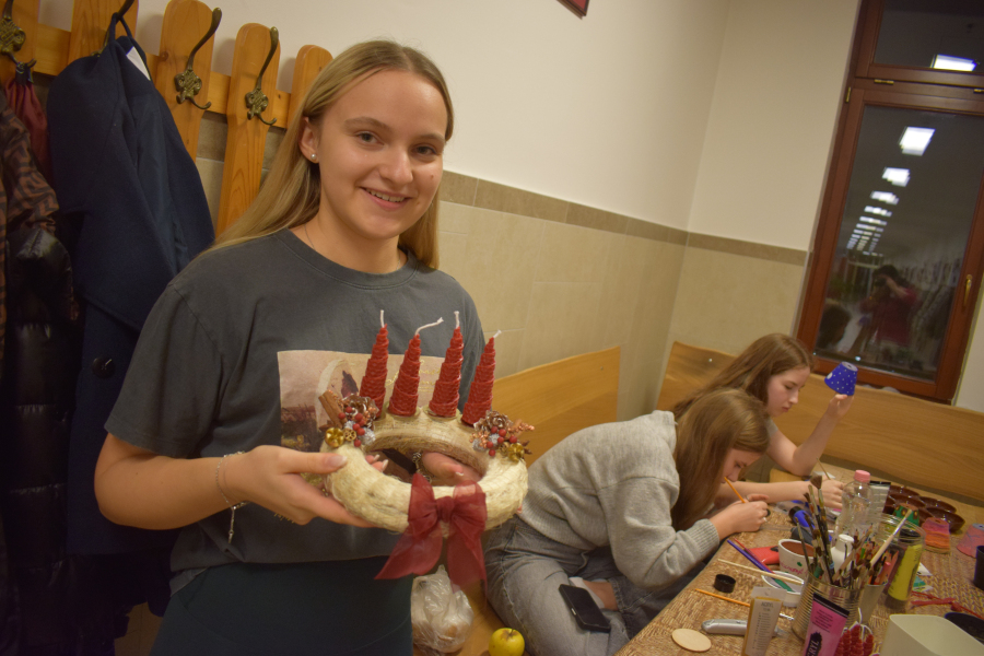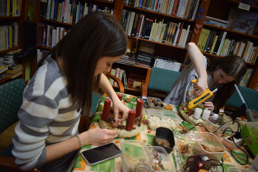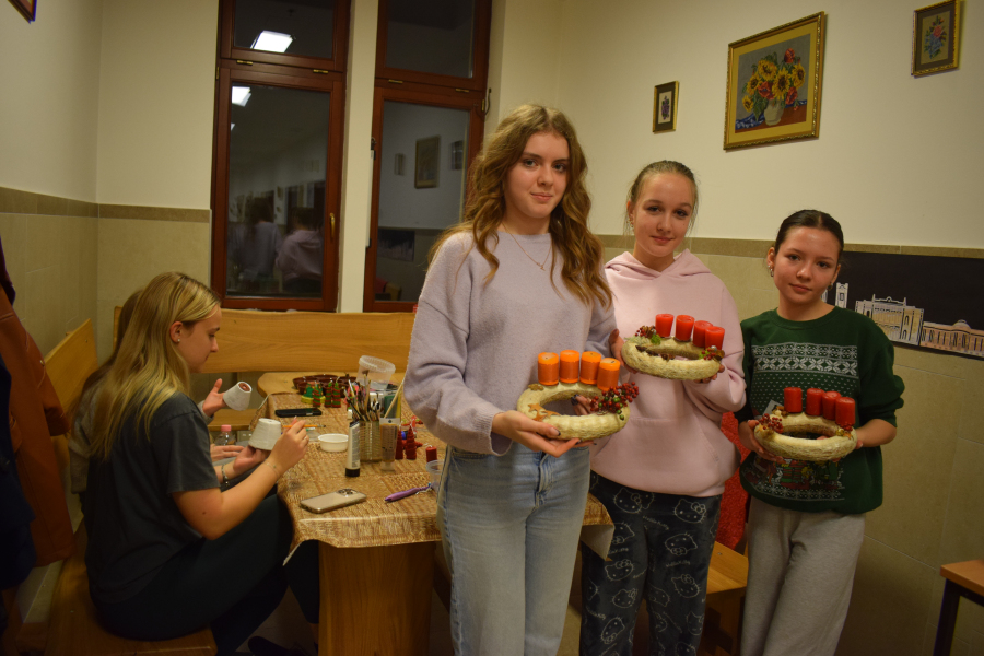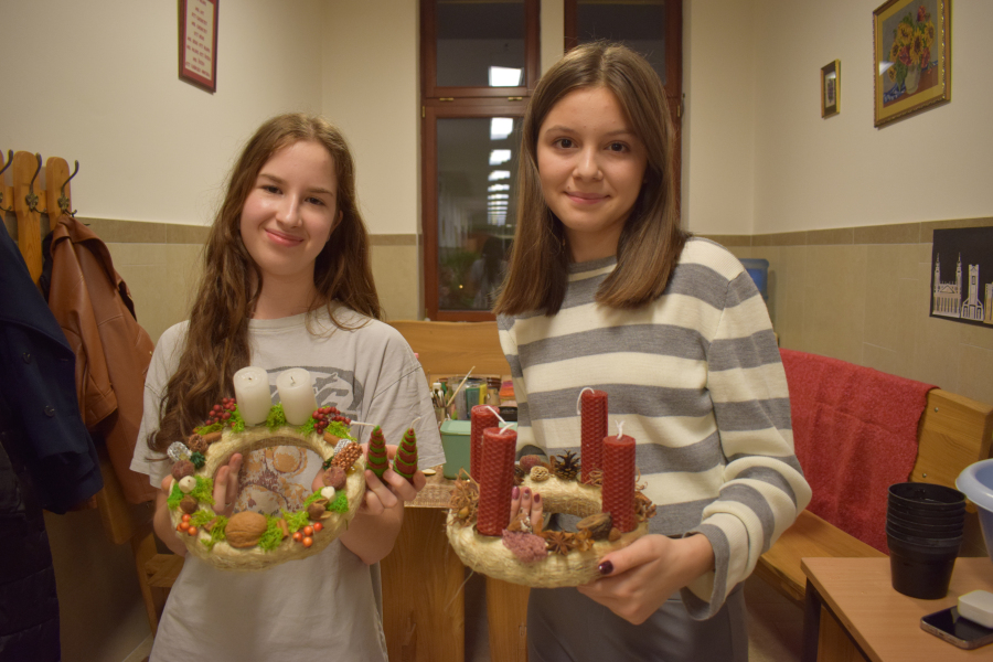 Az elmúlt hetek a kreativitás jegyében teltek az internátusban. Volt agyagozás, gyertyamártás, vesszőfonás, méhviasz gyertya készítés, mézessütés. A mostani bennmaradós hétvégén a lányok asztaldíszeket és kopogtatókat készítettek Gábor-Tóth Ildikó nevelőtanár vezetésével. Nagyon élvezték, hogy a tanulási tér kézműves kuckóvá változott, és kezeik közül szebbnél-szebb karácsonyt idéző dísztárgy került ki.