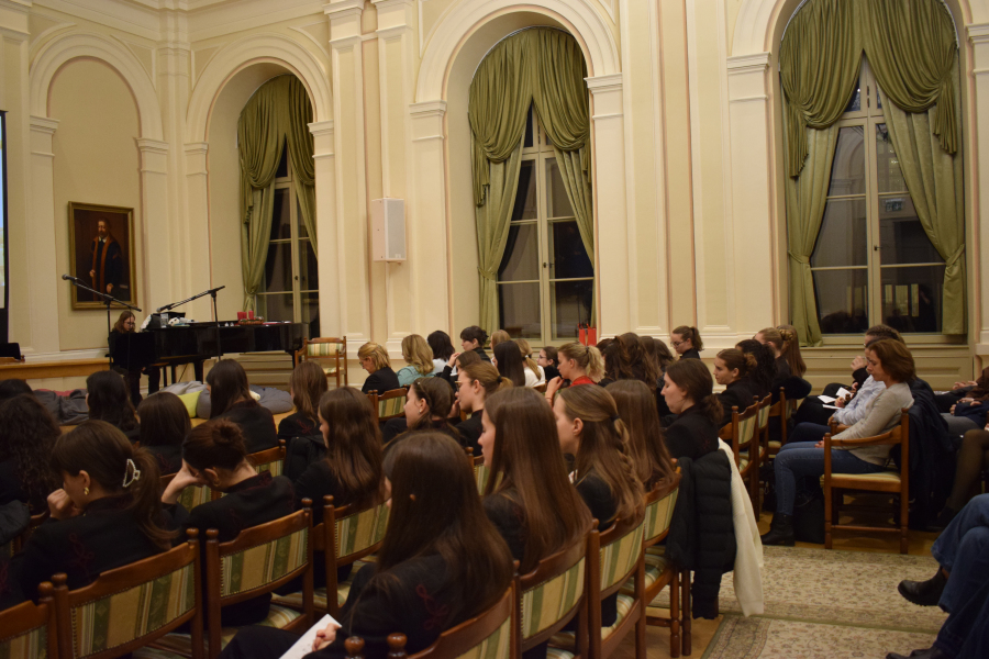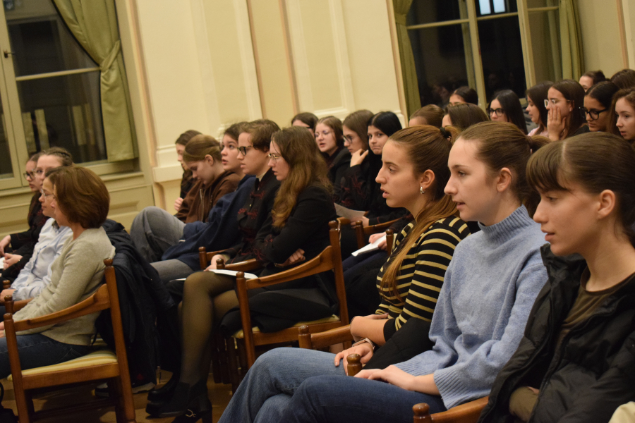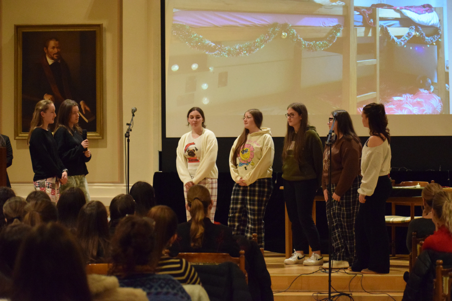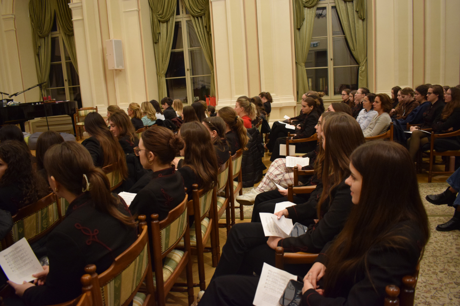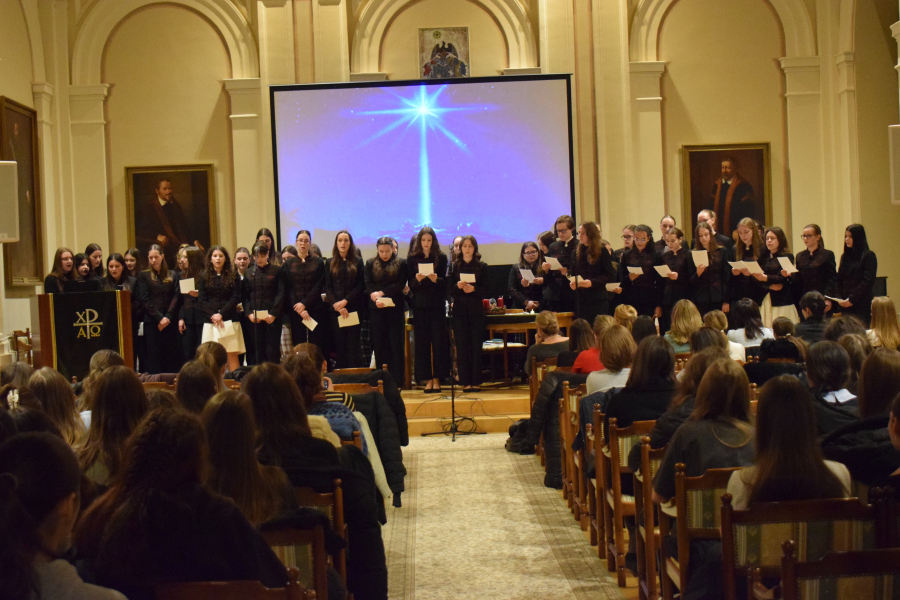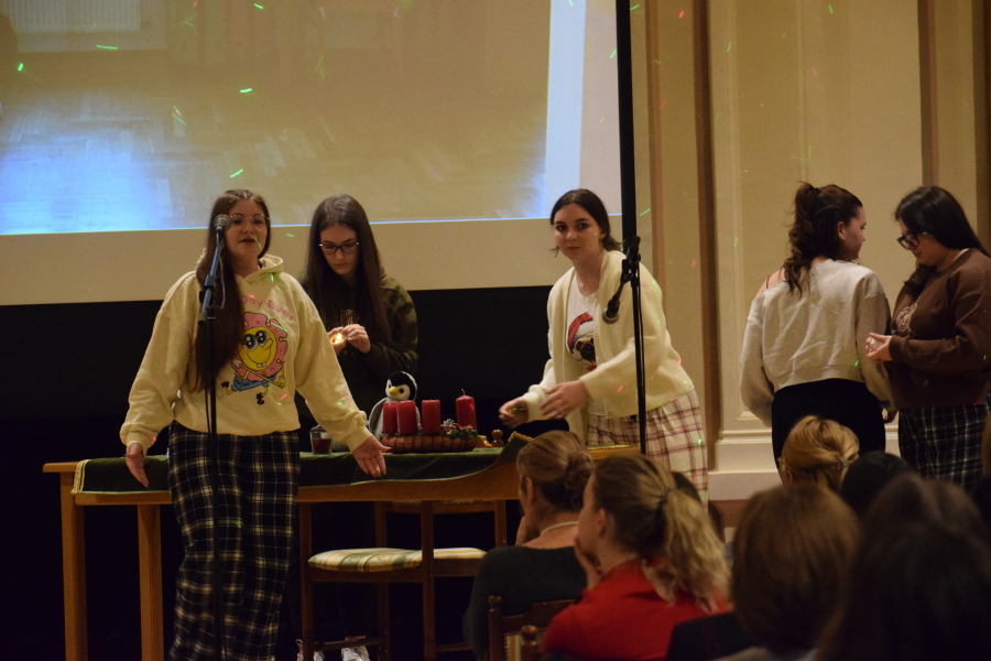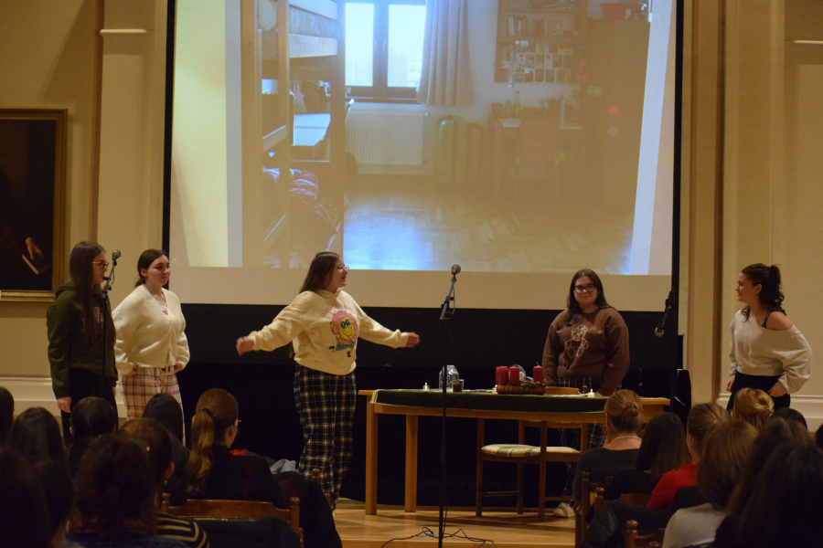 Ezt követően a lányok és a fiúk karácsonyi műsorral kedveskedtek diáktársaiknak és tanáraiknak, ezzel is segítve az elcsendesedést és a karácsonyra való hangolódást. Az estét végül közösen, jó hangulatú zenéléssel, társasjátékozással és forró csokizással zártuk.