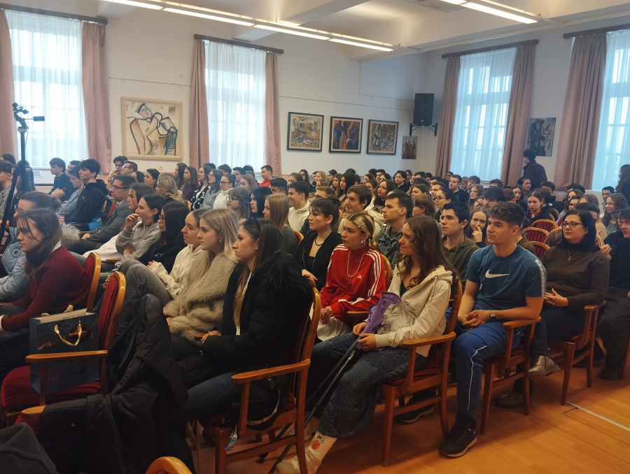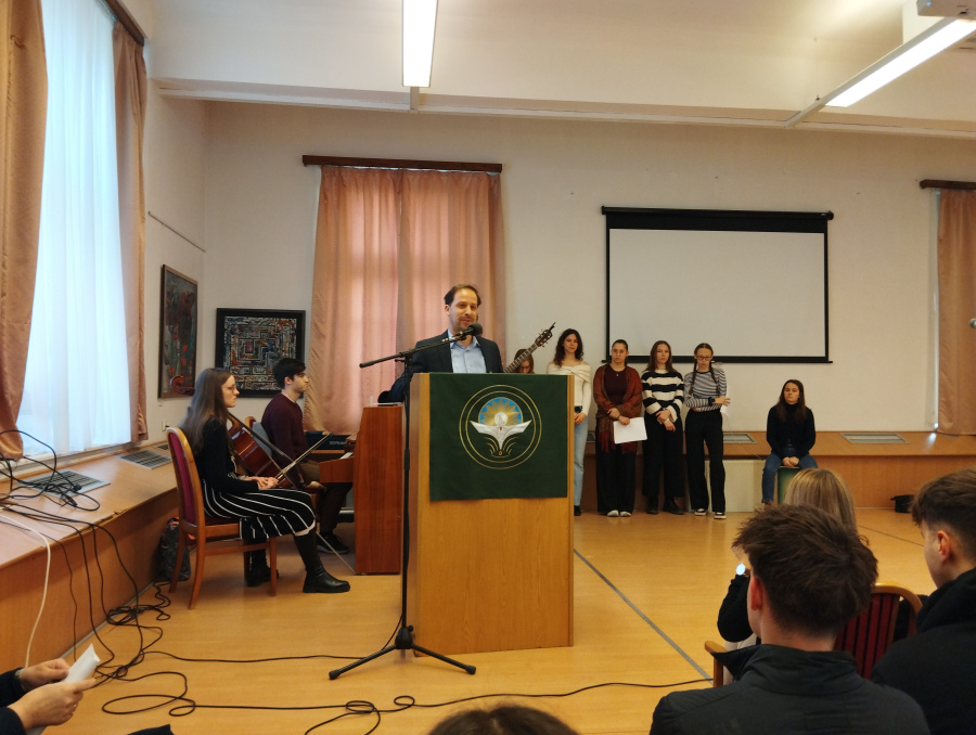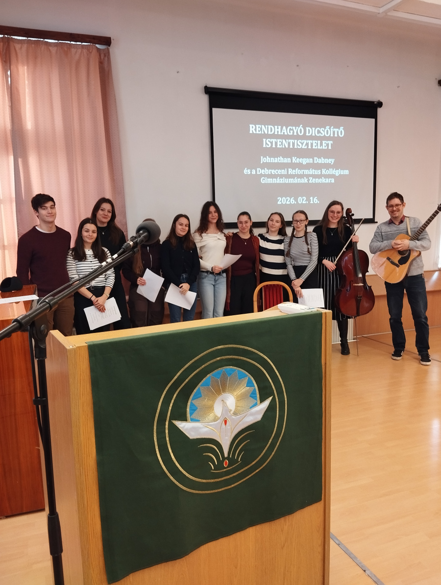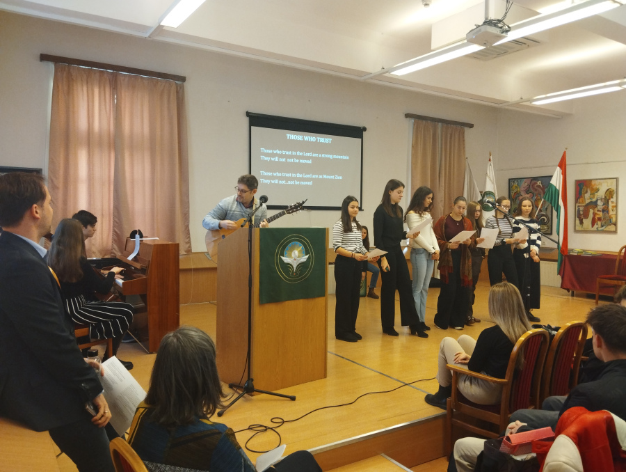 A hétfői napunk a Dóczyban kezdődött, ahol reggeli áhítaton szolgáltunk a zenekarral. A hétre hangolódást Johnathan Tanár úr igei gondolataival kezdtük. Feltöltődést adott a lelkünknek, hogy hangszerek kíséretével együtt énekelhettünk a Dóczys diákokkal.”