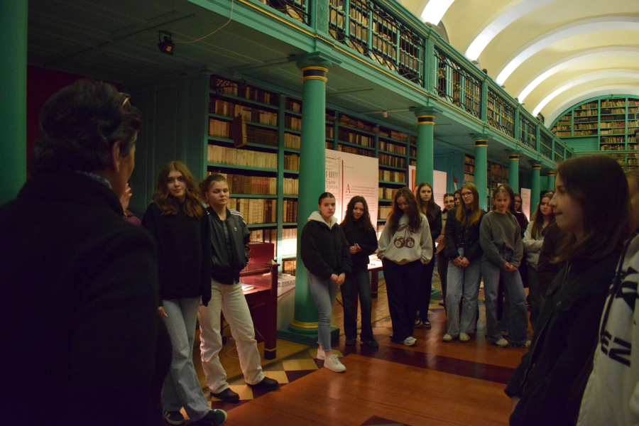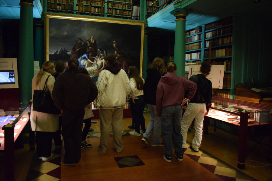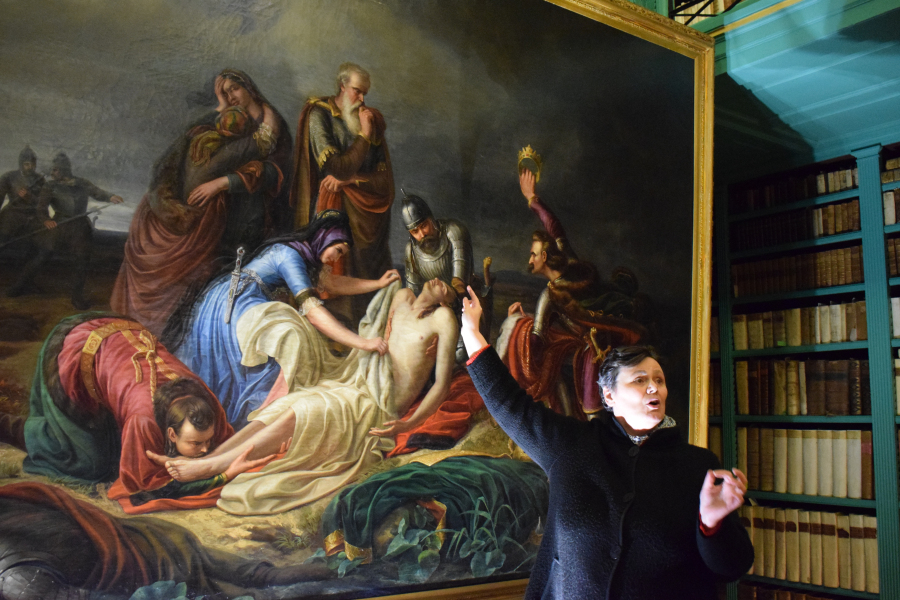 Ezt követően a Nagykönyvtárban került sor az Orlay-festmény bemutatására, ahol közösen fedezhettük fel a festményen megjelenő bibliai és történelmi párhuzamokat.