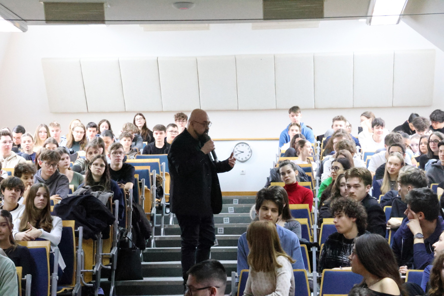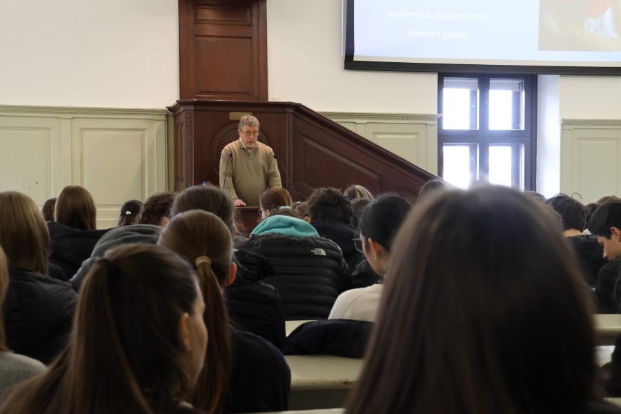 A nap Kahoot-kvízzel indult az osztálytermekben, ahol a tanulók játékos formában mérhették össze tudásukat. Ezt követően érdekes előadások következtek. Dr. Gelencsér András, a Pannon Egyetem akadémikusa és egyetemi tanára a „Fenntartható fejlődés: Háttal a valóságnak” című előadásában a fenntarthatóság kérdéseit járta körül, míg Tóth Levente AI-specialista a mesterséges intelligencia világába nyújtott megdöbbentő betekintést.