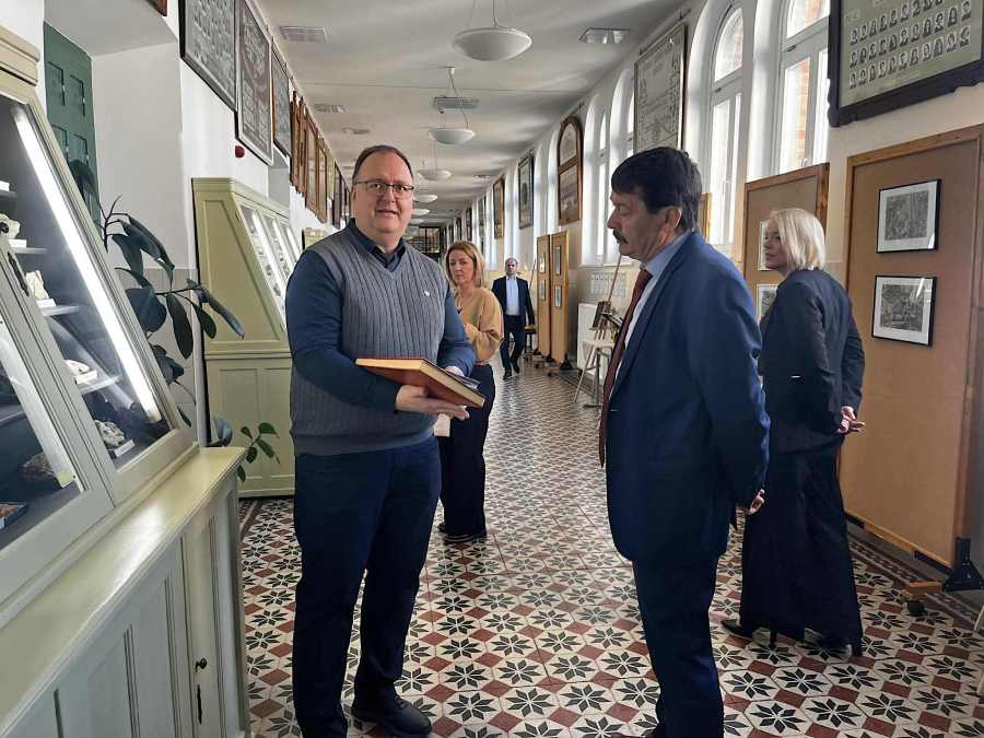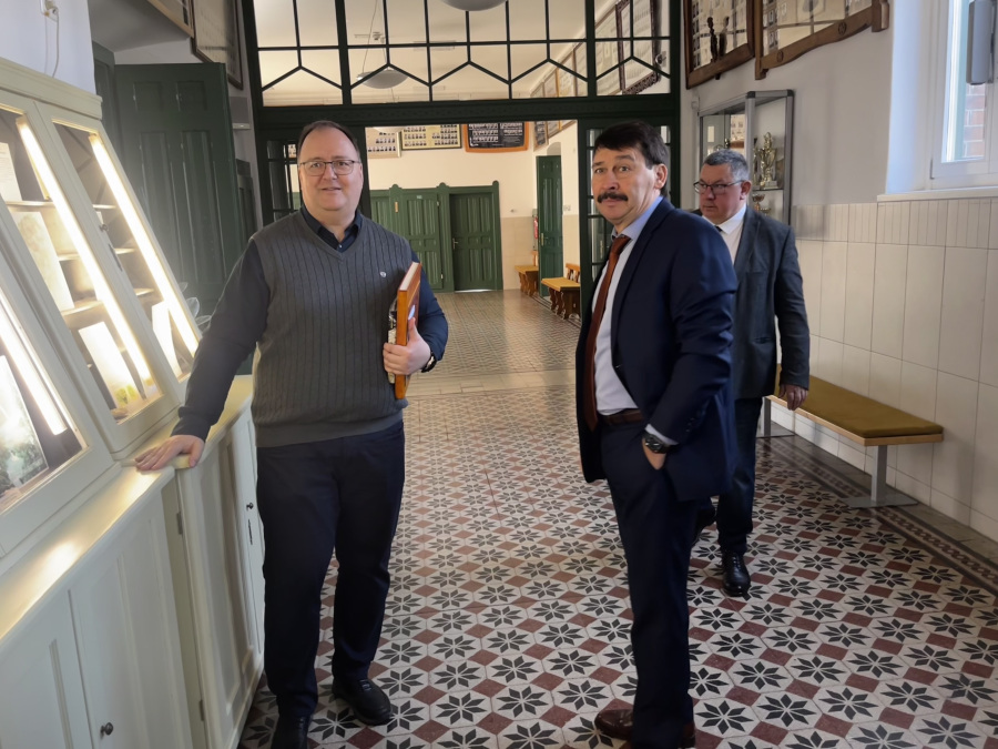 Az előadás előtt elnök úr iskolánkat is meglátogatta, ahol megtekintette az ásványgyűjteményt.