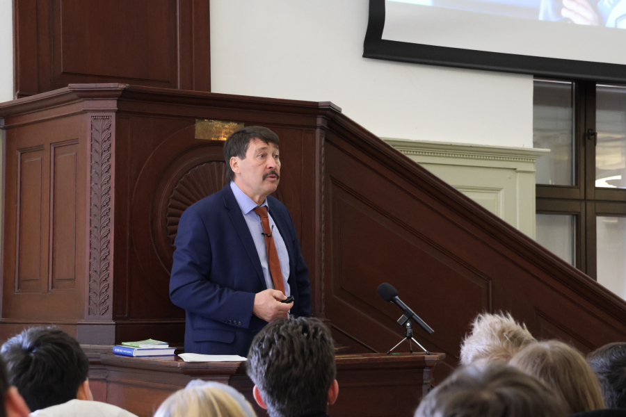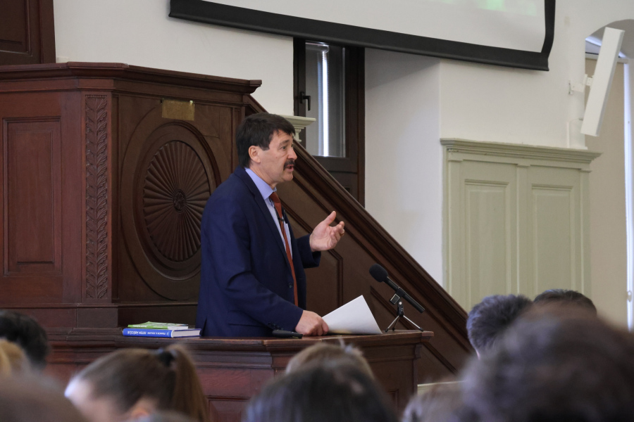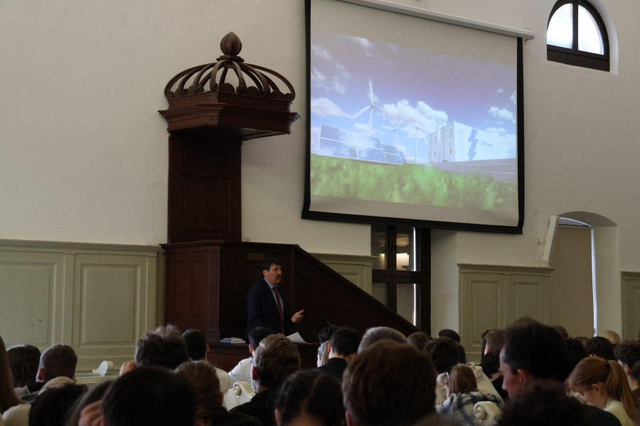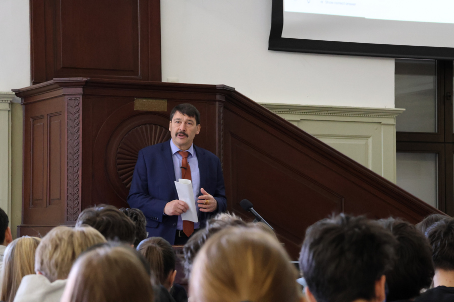 Március 18-án Áder János volt köztársasági elnök, a Kék Bolygó Alapítvány kuratóriumi elnöke látogatott iskolánkba. Előadása a teremtett világ védelméről szólt, különös tekintettel a víz- és energiagazdálkodásra, a környezeti károk enyhítésére és a biodiverzitást fenyegető mezőgazdasági tevékenységekre. A maratoni beszédet a hallgatóságot bevonva szavazásokkal tette izgalmasabbá, és számos olyan adatról és magyar fejlesztésű eljárásról is szó volt, melyek egyrészt elgondolkodtattak bennünket, másrészt reményt keltettek, hogy a klímaváltozás enyhítésére közösen, felelősen gondolkodva mégis van esély.