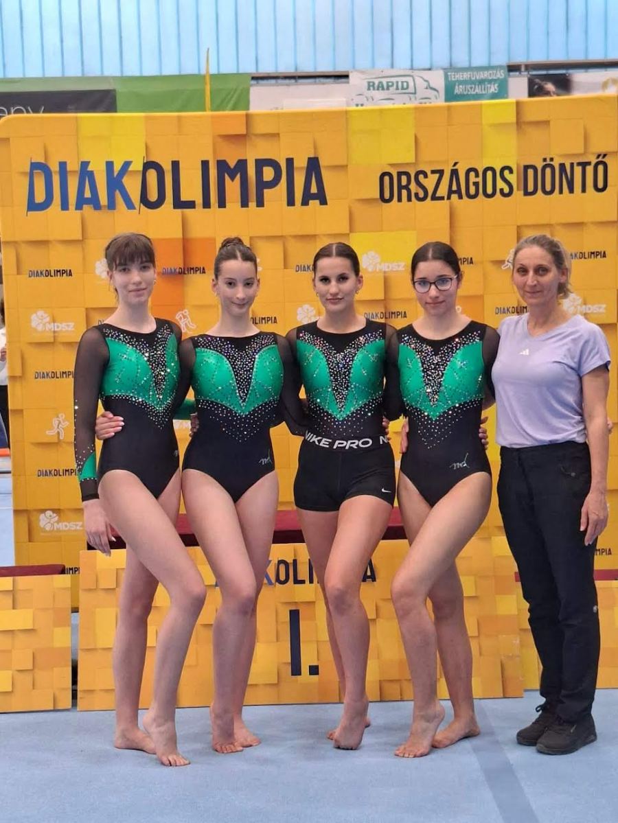 Iskolánk tornacsapata negyedik helyezést ért el a budapesti Diákolimpia Országos Döntőjén. A tanév legnagyobb versenyén 13 csapat mérte össze tudását.