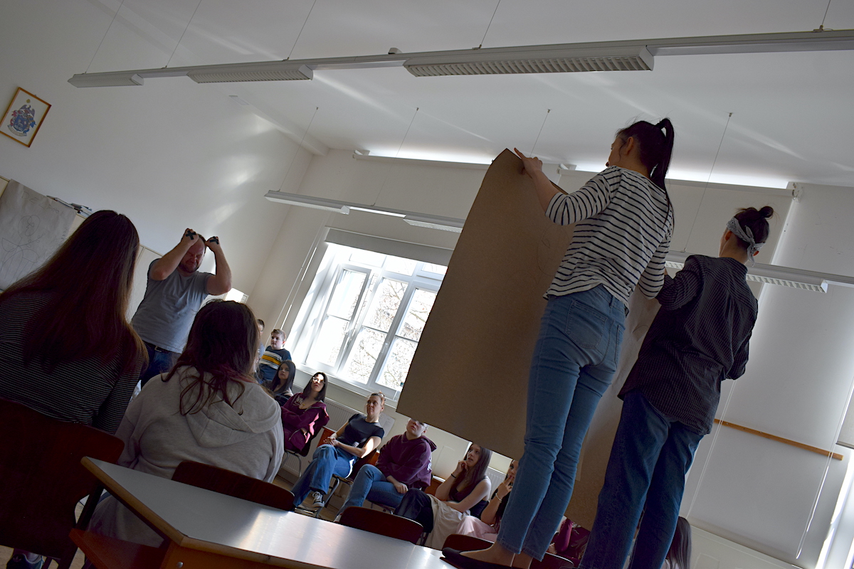 A 9.A osztálytermi színházi nevelési előadáson vett részt a múlt héten. Jon Fosse Halál Thébában című drámája nyomán rendezett interaktív előadásba kapcsolódtak be