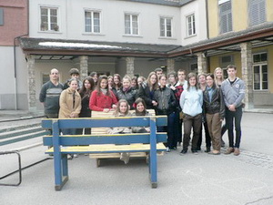 A csoportot Németh Lea tanárnő és Karasszon Dániel tanár úr kíséri. A diákcsoport 2012. március 23-án, pénteken este 10 órakor indult el a nagy kalandra bérelt autóbusszal. Közel 20 órás utazás után a csoport szerencsésen megérkezett Schiersbe, a fénykép a megérkezés után készült.