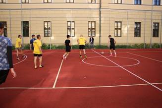 A nyitó mérkőzést feszült figyelem várta. Idén első alkalommal a tanárok és a végzős diákok alkotta csapatok játszottak egymással. A látványos és gólokban gazdag összecsapást végül a diákok nyerték meg 5-1 arányban. A sportszerű játékért köszönet mindkét csapatnak.